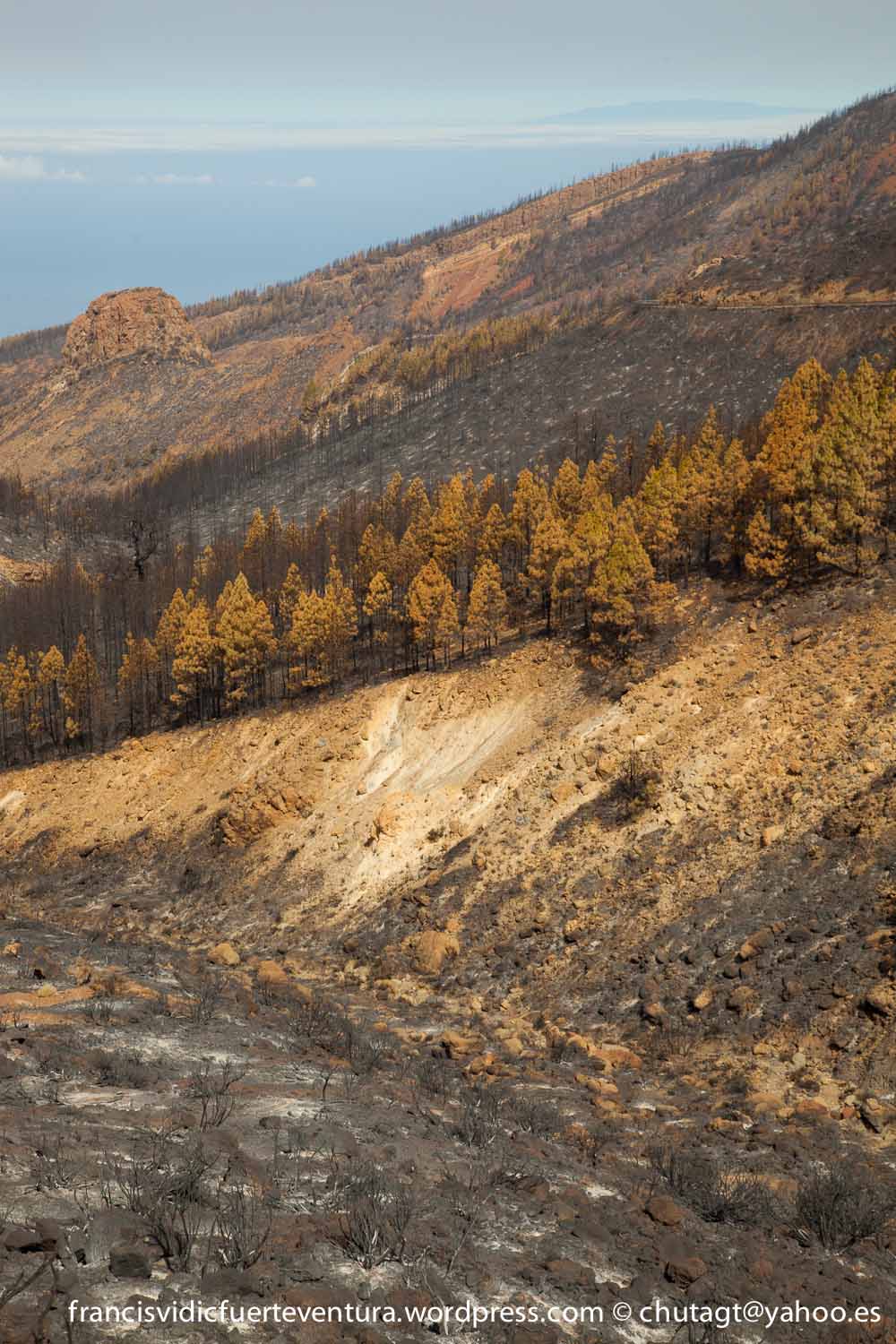 Ruta 2 y 4 de las Cañadas del Teide,.Siete cañadas y Arenas Negras. Algunas fotos de la zona quemada en el incendio.