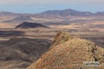 Después de dar buena cuenta del desayuno, disfrutando de tan espectaculares panorámicas, descenderemos primero rumbo al cercano volcán de Toneles de 209 metros y posteriormente al cauce del Barranco de la Cueva, donde aparte de la explotación ganadera que está ubicada allí, tendremos la ocasión de poder apreciar, las ruinas de las construcciones de poblados prehispánicos, eso sí, bien camuflados en la orografía propia del terreno, posteriormente seguiremos caminando por la carretera de tierra, cauce arriba, y al llegar a la altura de La Montaña de Juanicón de 254 metros, la bordearemos por la pista que va en dirección al Barranco de Jacomar, y que abandonaremos más adelante, rumbo hacia la tienda en la que iniciamos la ruta y donde daremos por concluido el camino.