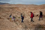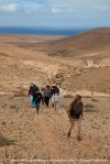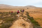 Partimos de la zona del poblado aborigen de Tisajoire, situado justo al lado del Malpaís de la Arena. En este lugar comenzaremos a caminar en dirección a La Montaña de Cervantes (151 mts de altitud) para ir bordeándola dejando a la izquierda la Rosa de Cervantes, que el Cabildo con buen criterio ha acotado, con una valla que abarca un gran perímetro en todo su entorno, para la protección de distintas especies de aves, sobre todo La Hubara (Avutarda) como es conocida en Fuerteventura. Una vez pasado este punto, seguimos nuestro recorrido hasta la cercana Cañada Melián (paraje dominado por los jables de origen orogénico y formado por las regresiones marinas), después de seguir durante un rato por su cauce, nos desviaremos a la derecha por el cercano Barranco de la Cruz, que seguiremos hasta coronar el Morro de Valle Chico (236 mts de altitud), desde donde descenderemos dejando atrás, El Chupadero Viejo, El chupadero Chico y El Morro de los Jablitos, llegando finalmente al Barranco de los Enamorados, lugar de singular belleza, actualmente muy deteriorado puesto que a pesar de estar protegido, todavía existe una cantera que continúa haciendo un enorme daño a este hermosísimo paisaje.