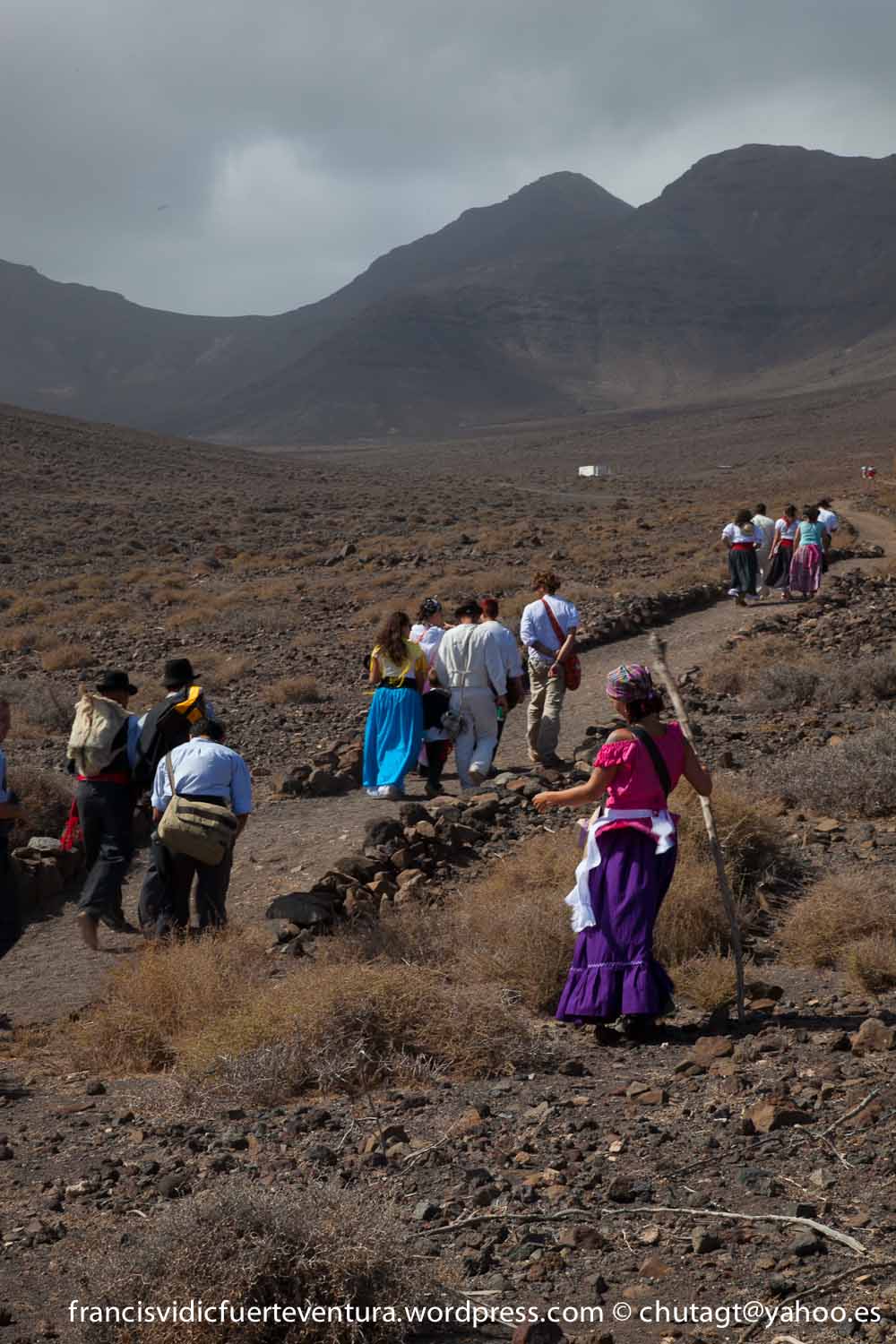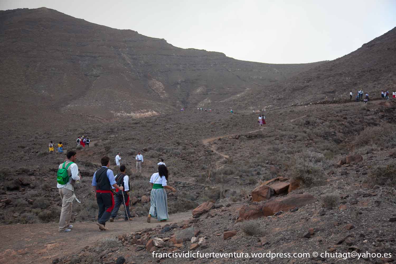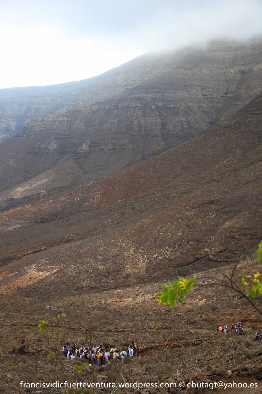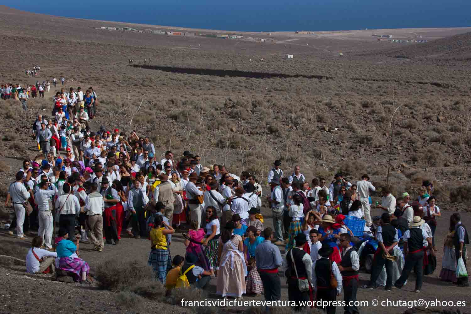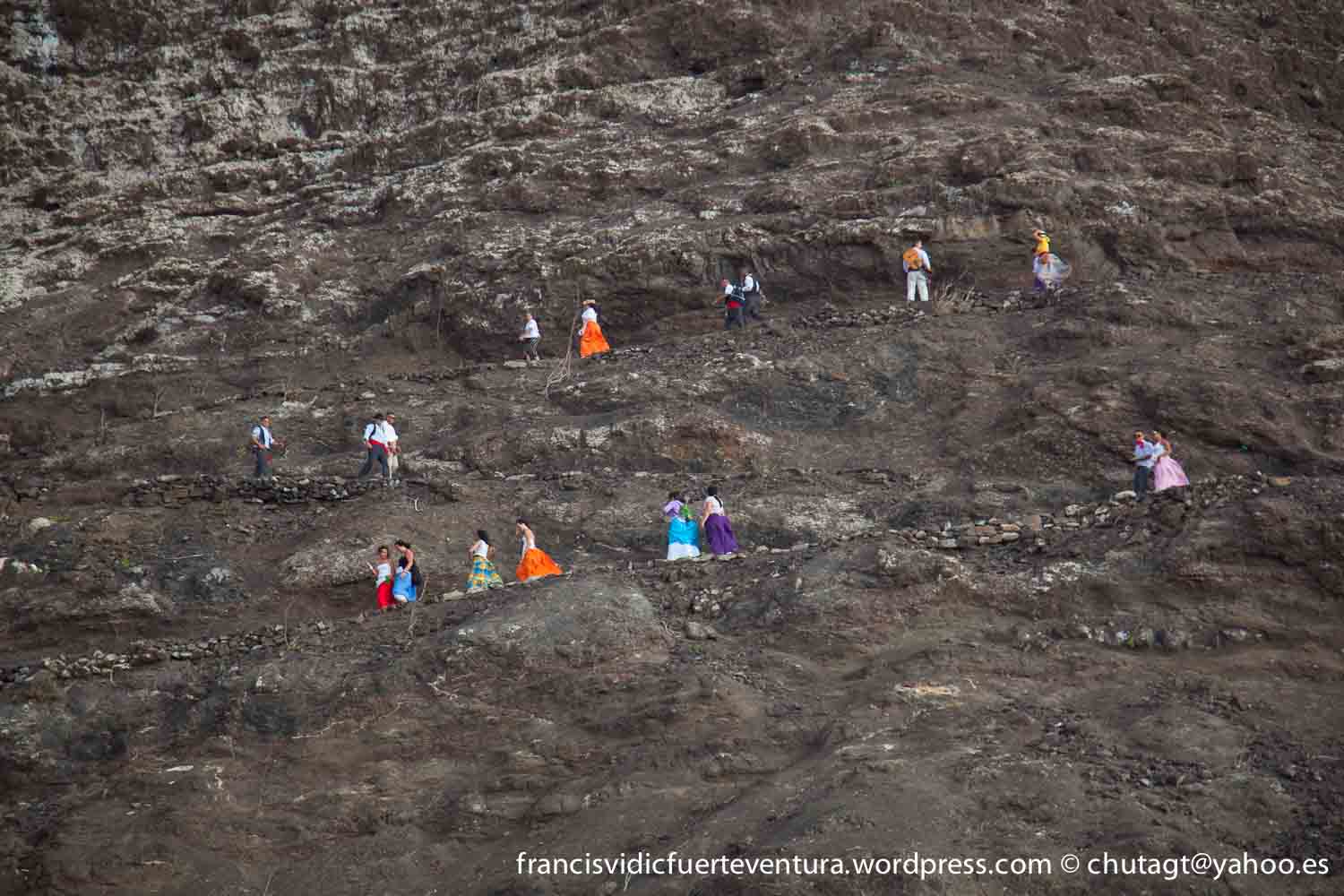 La Romeria de Cofete parte desde Gran valle y en ascenso por el mismo valle hasta la degollada por un camino que va haciendo zig zag hasta llegar a lo alto de la degollada;
