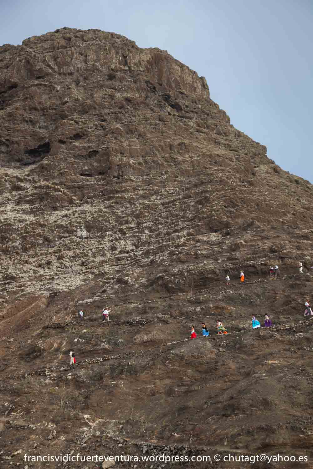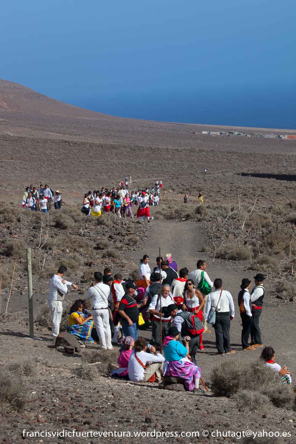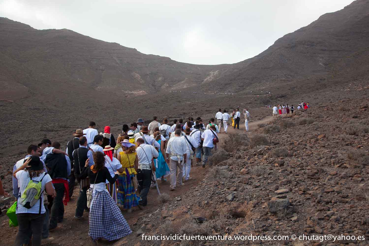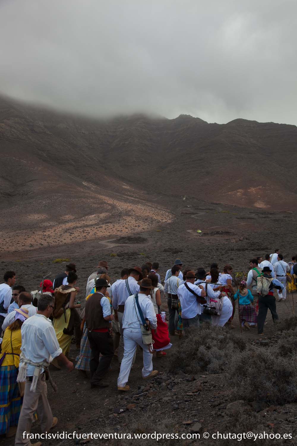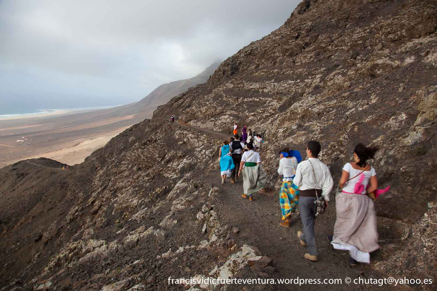 La Romeria de Cofete parte desde Gran valle y en ascenso por el mismo valle hasta la degollada por un camino que va haciendo zig zag hasta llegar a lo alto de la degollada;