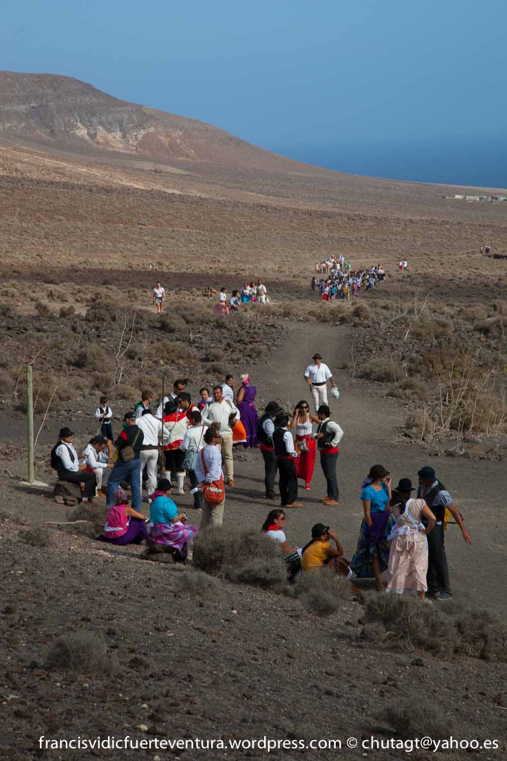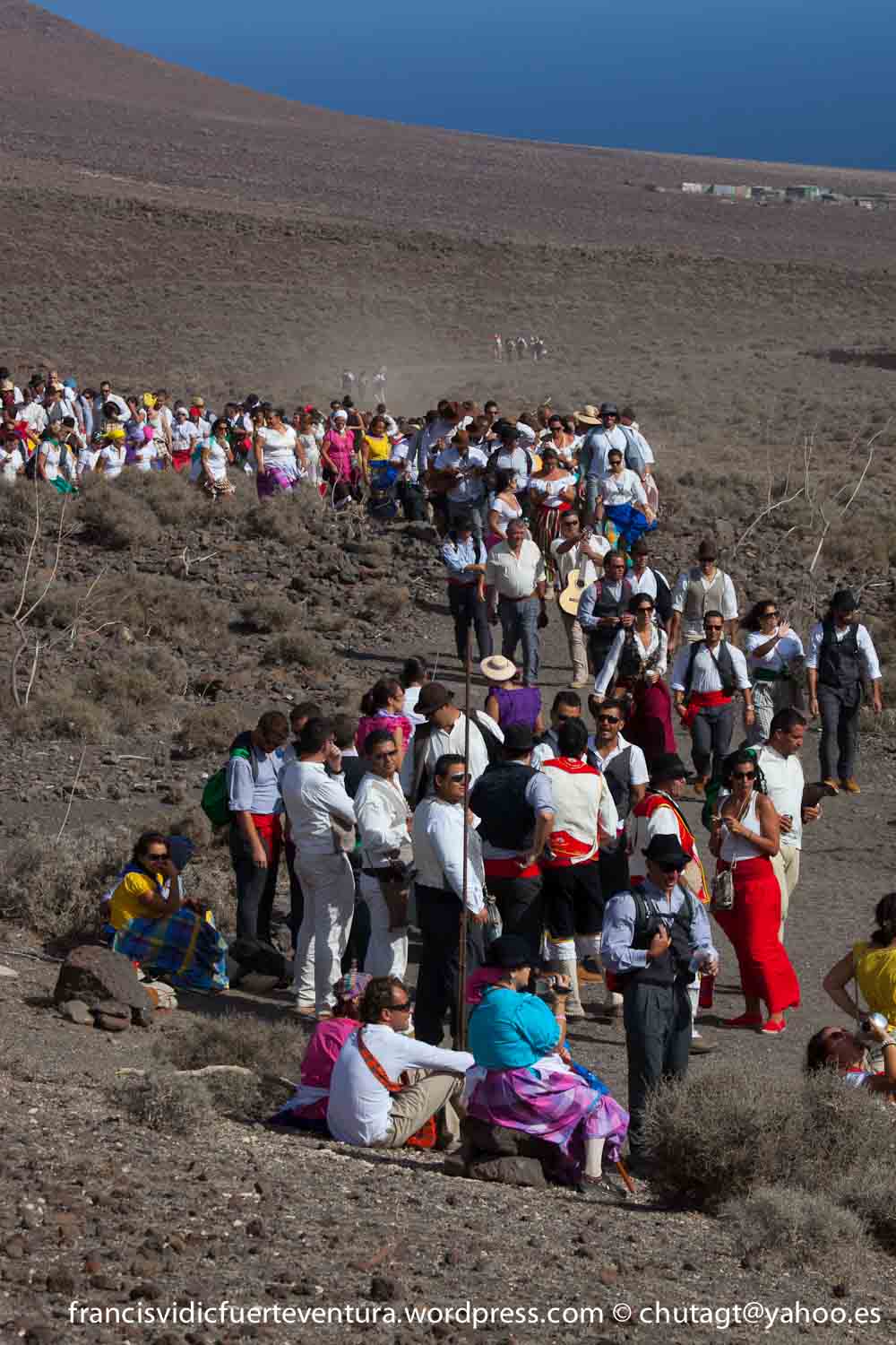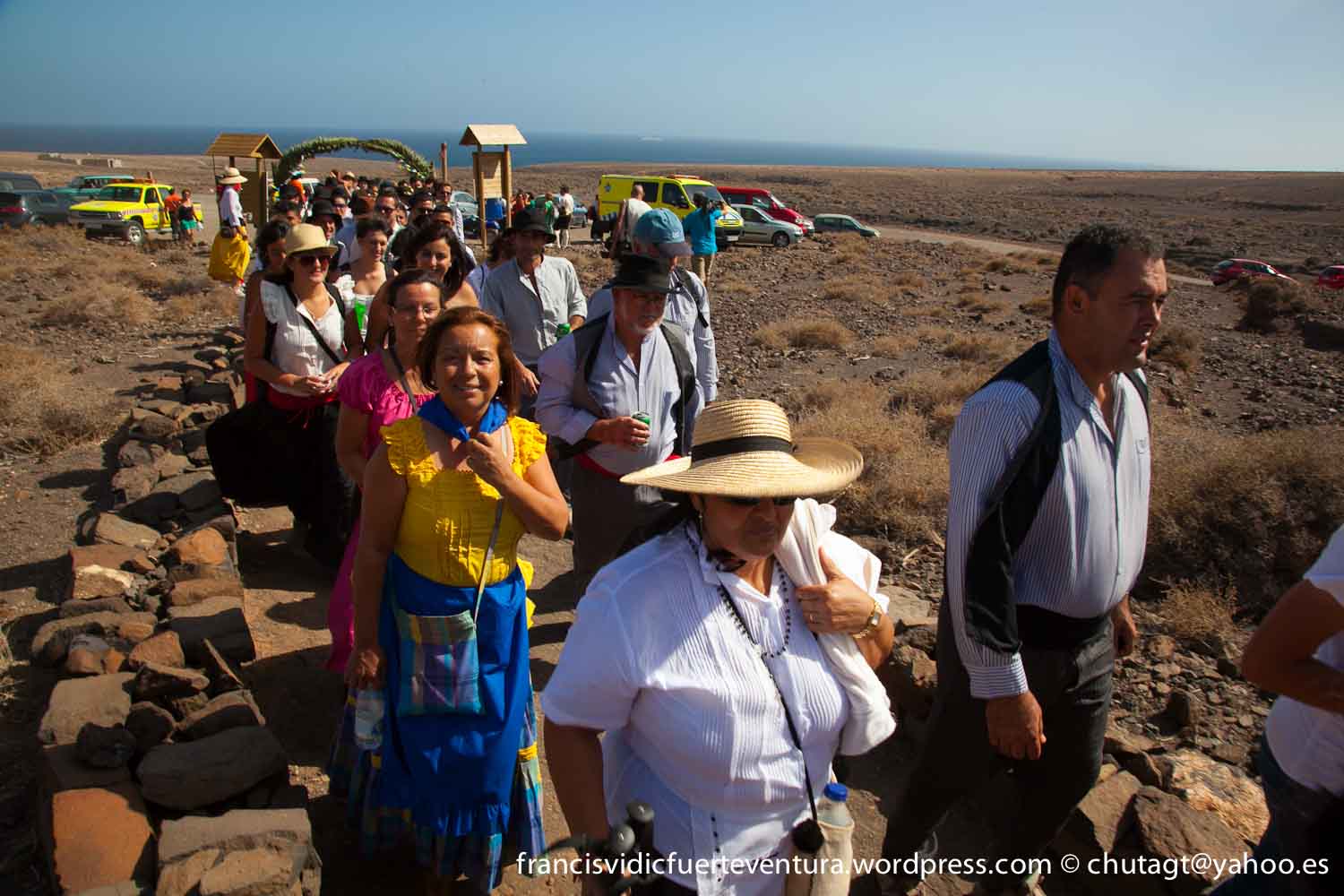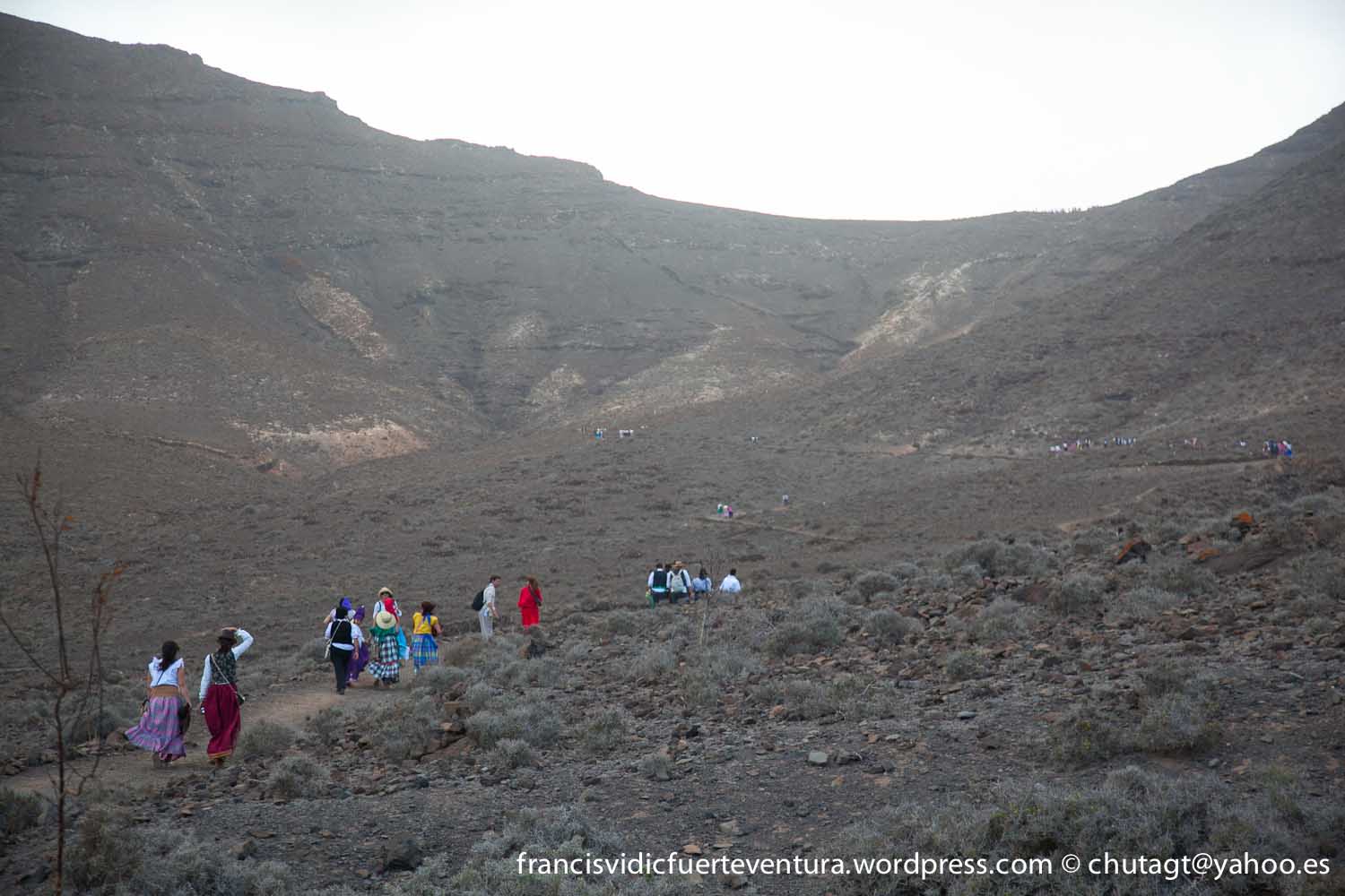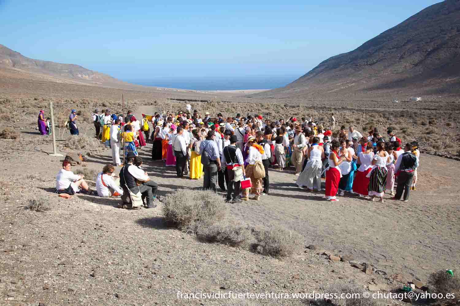 La Romeria de Cofete parte desde Gran valle y en ascenso por el mismo valle hasta la degollada por un camino que va haciendo zig zag hasta llegar a lo alto de la degollada;