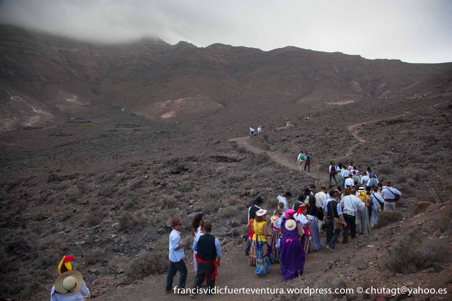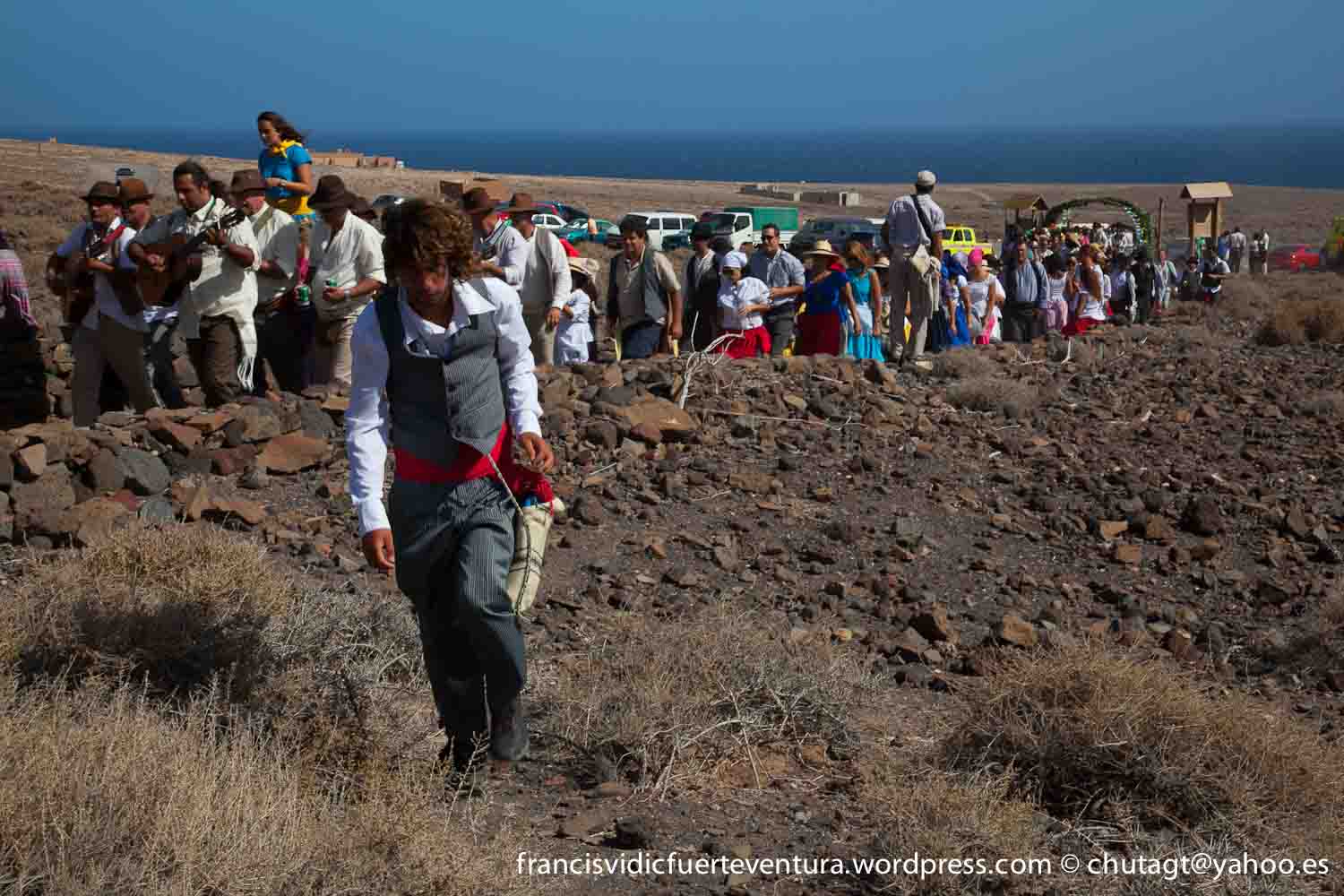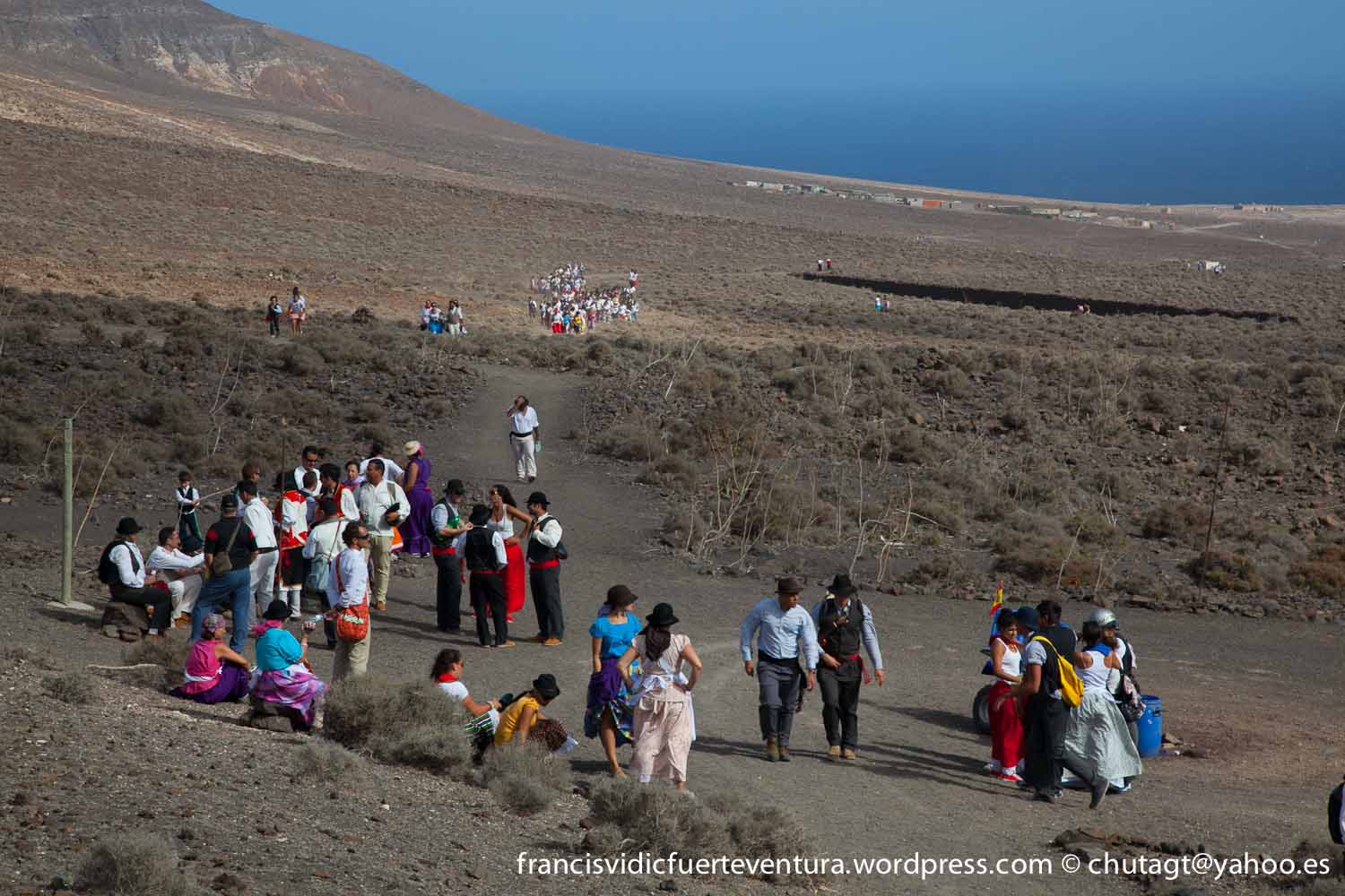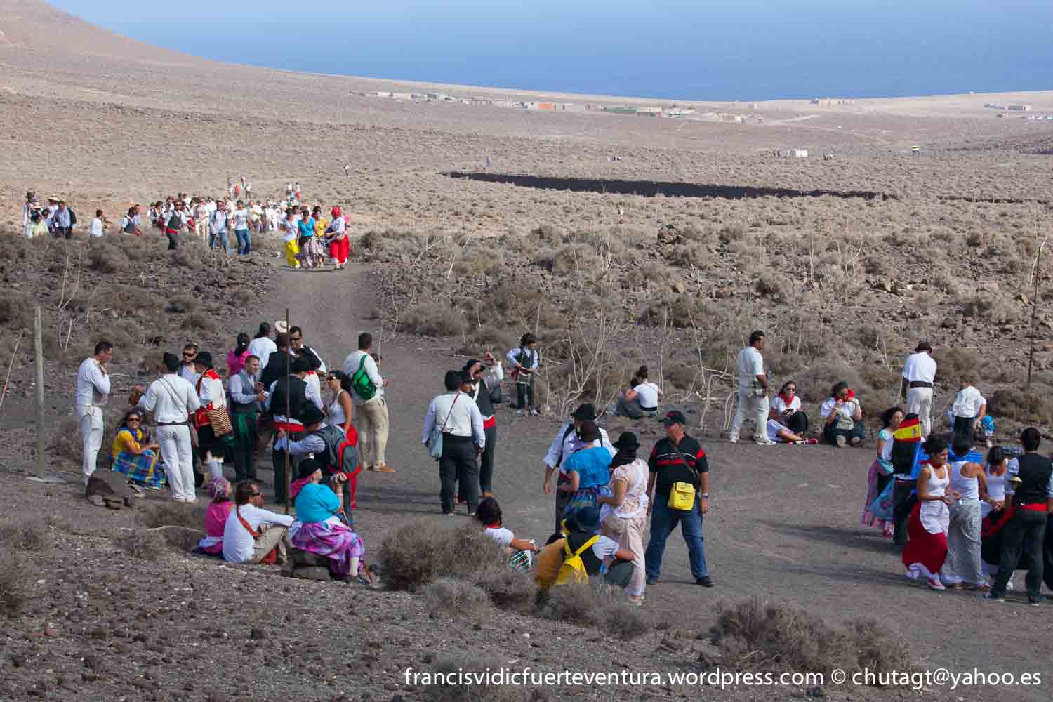 La Romeria de Cofete parte desde Gran valle y en ascenso por el mismo valle hasta la degollada por un camino que va haciendo zig zag hasta llegar a lo alto de la degollada;