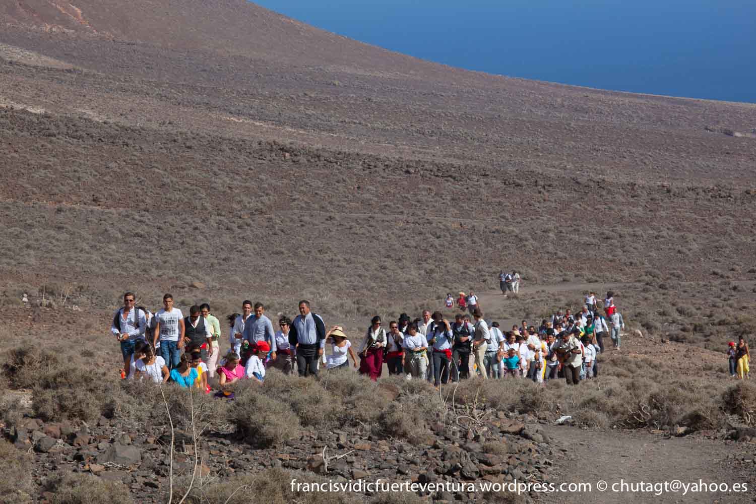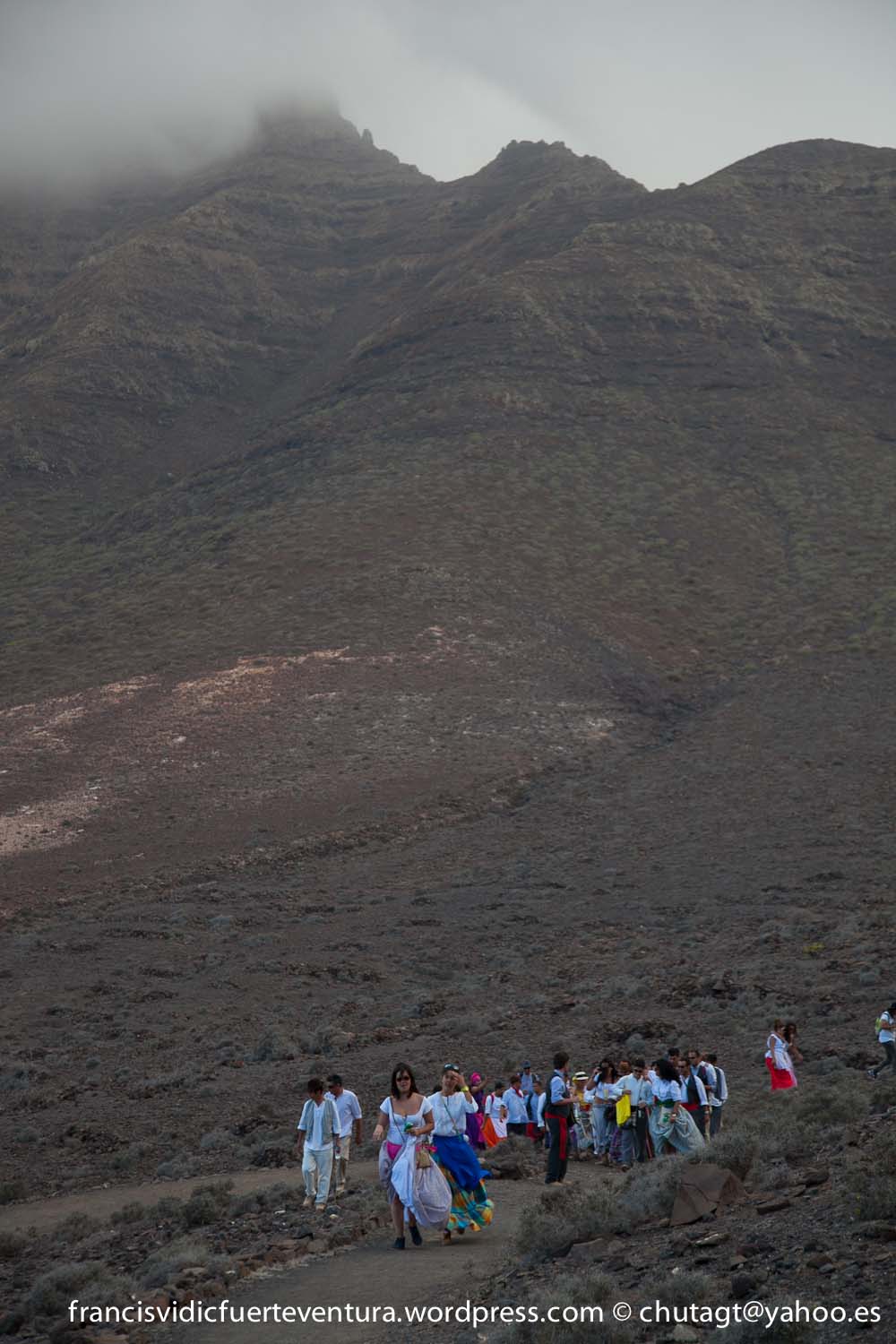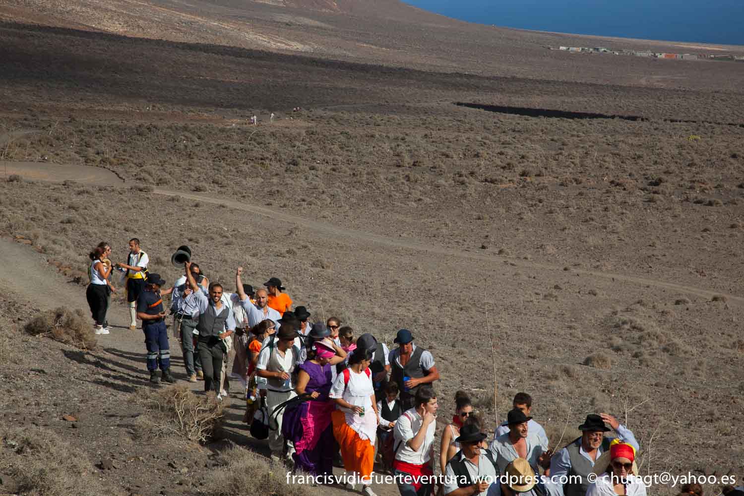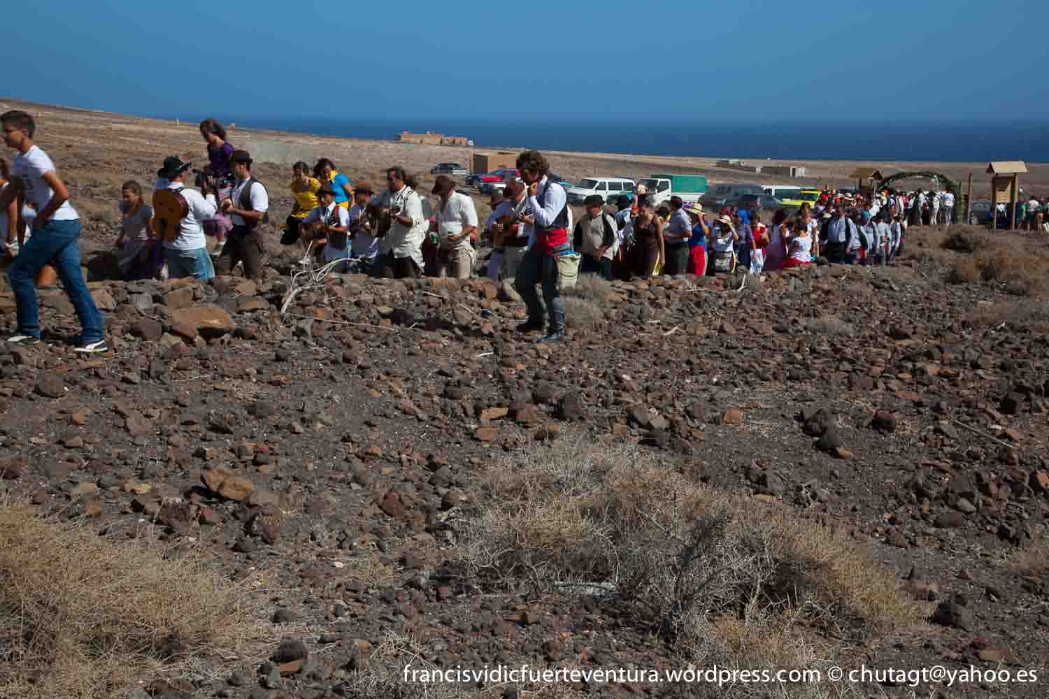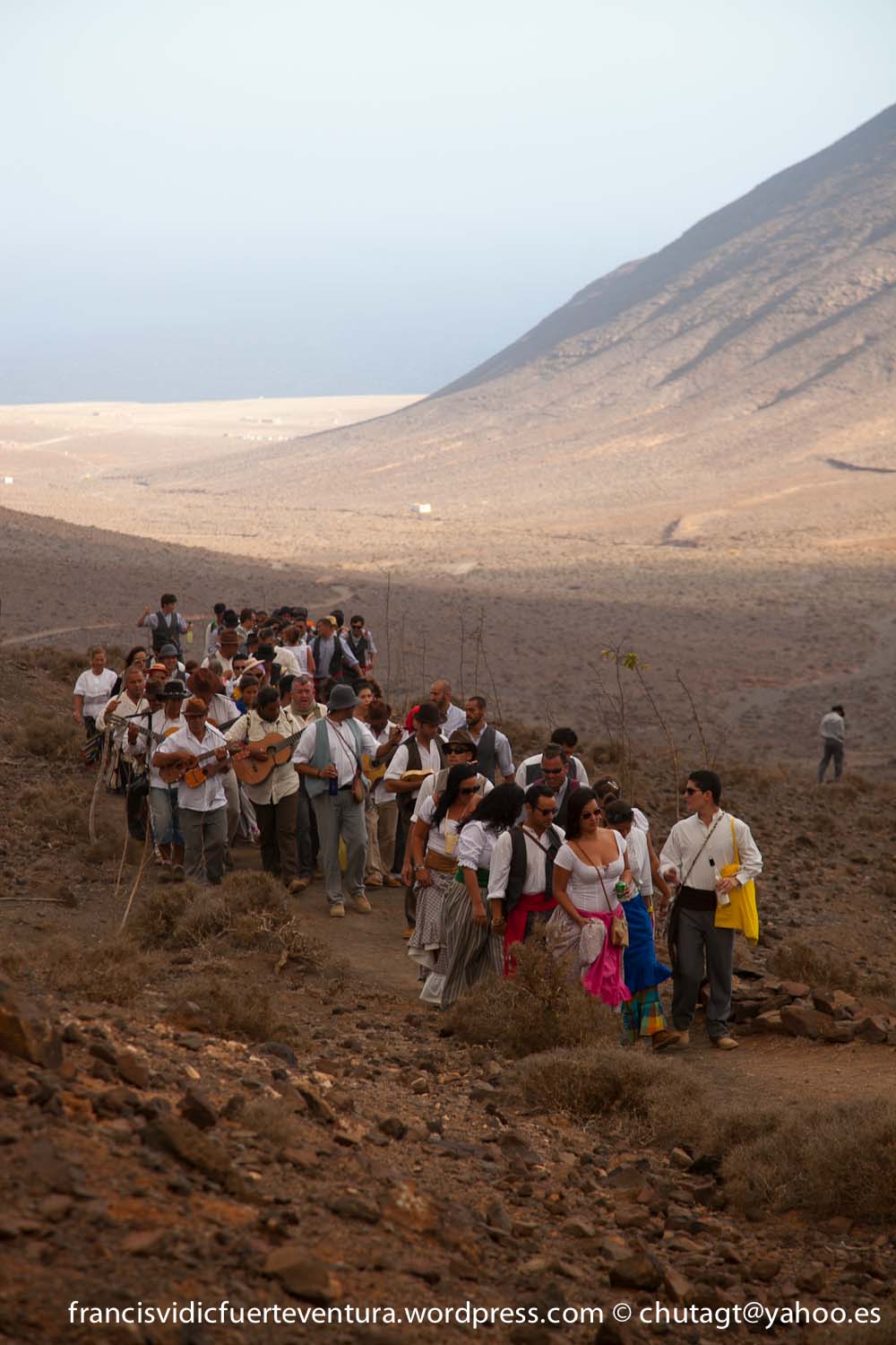 La Romeria de Cofete parte desde Gran valle y en ascenso por el mismo valle hasta la degollada por un camino que va haciendo zig zag hasta llegar a lo alto de la degollada;