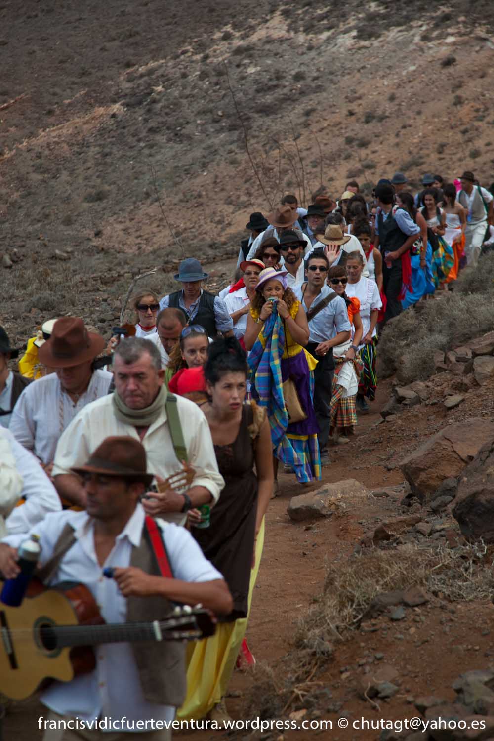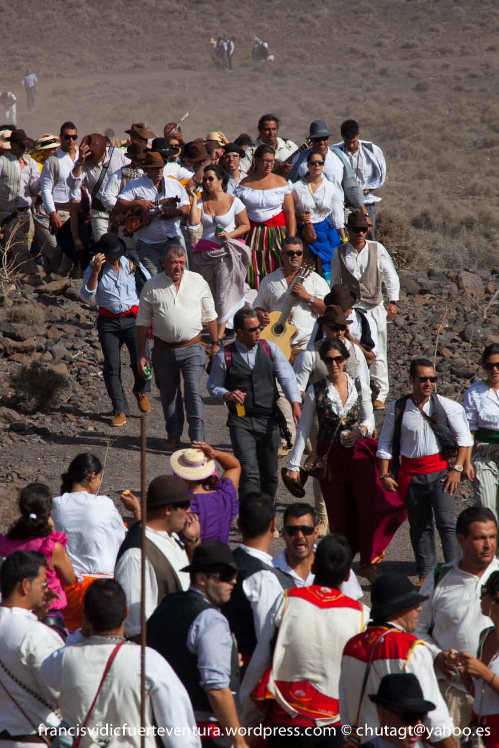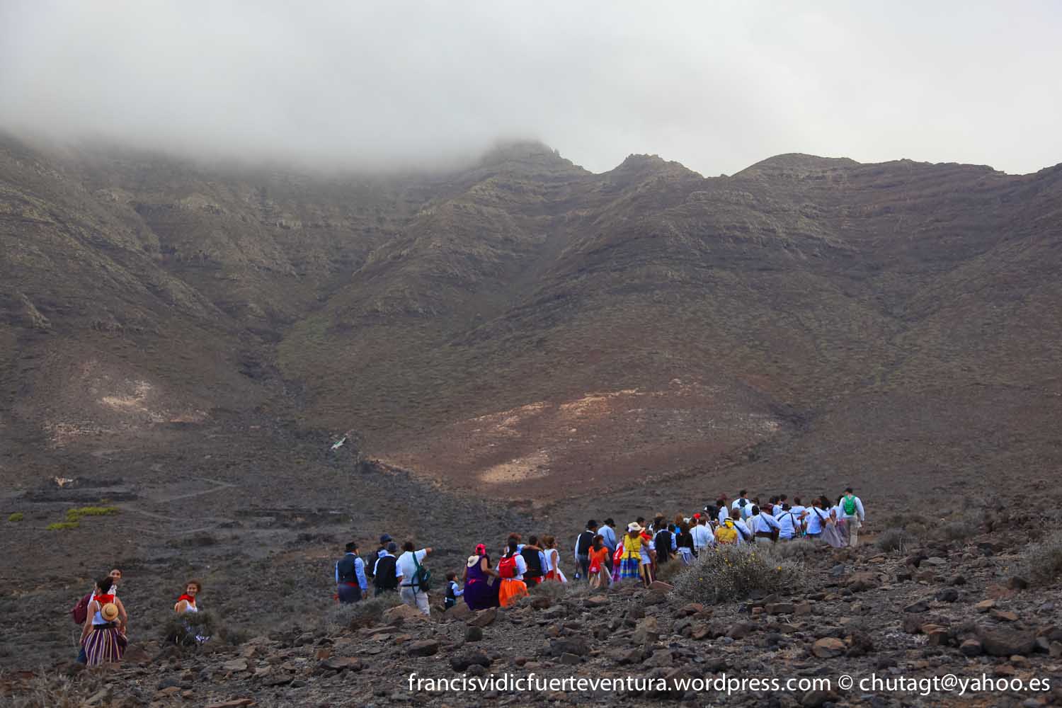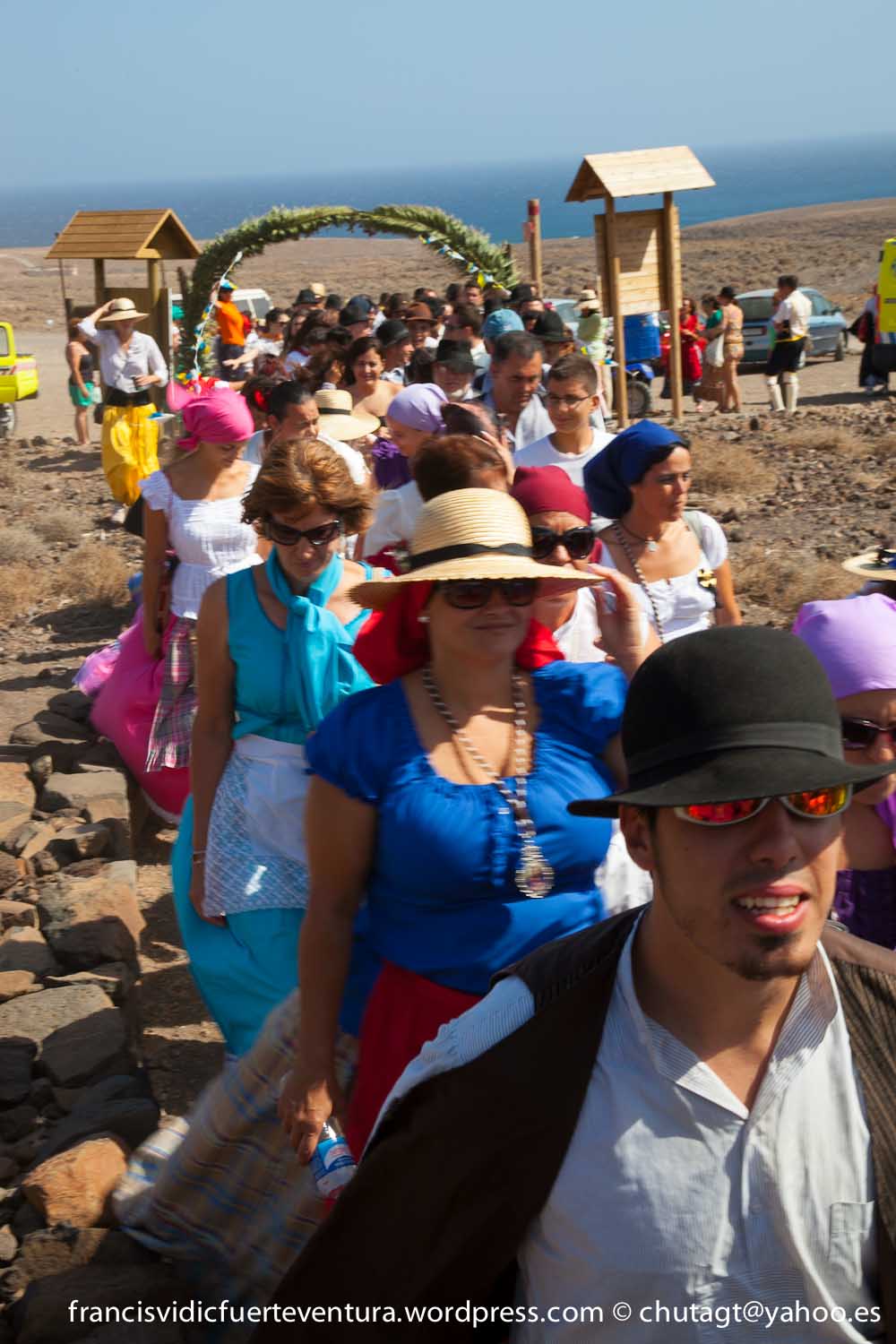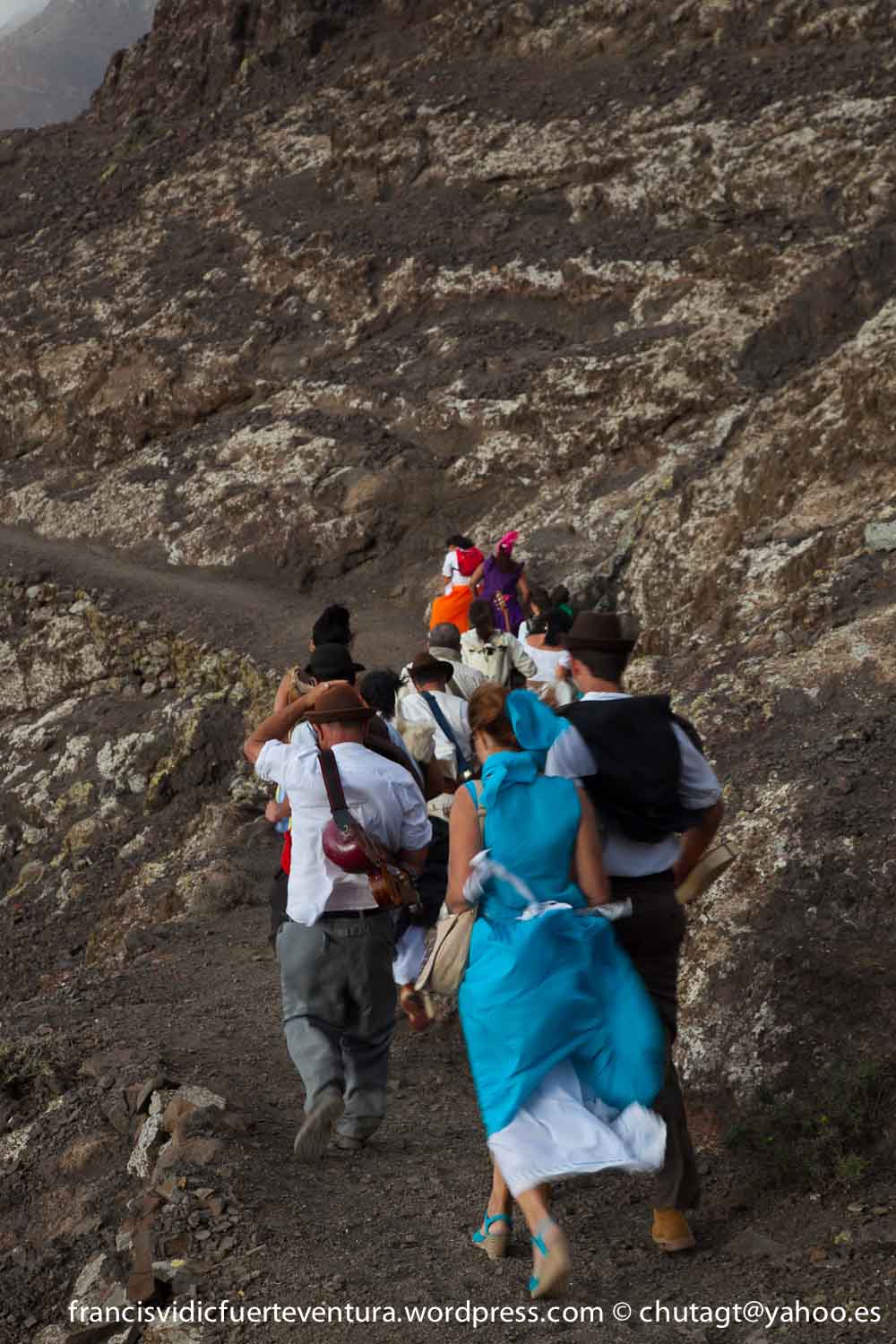 La Romeria de Cofete parte desde Gran valle y en ascenso por el mismo valle hasta la degollada por un camino que va haciendo zig zag hasta llegar a lo alto de la degollada;
