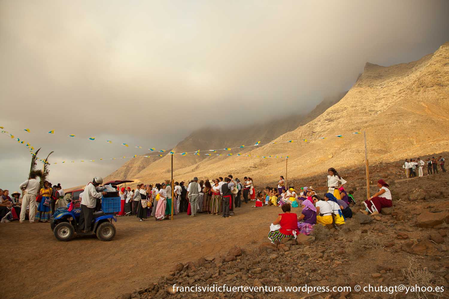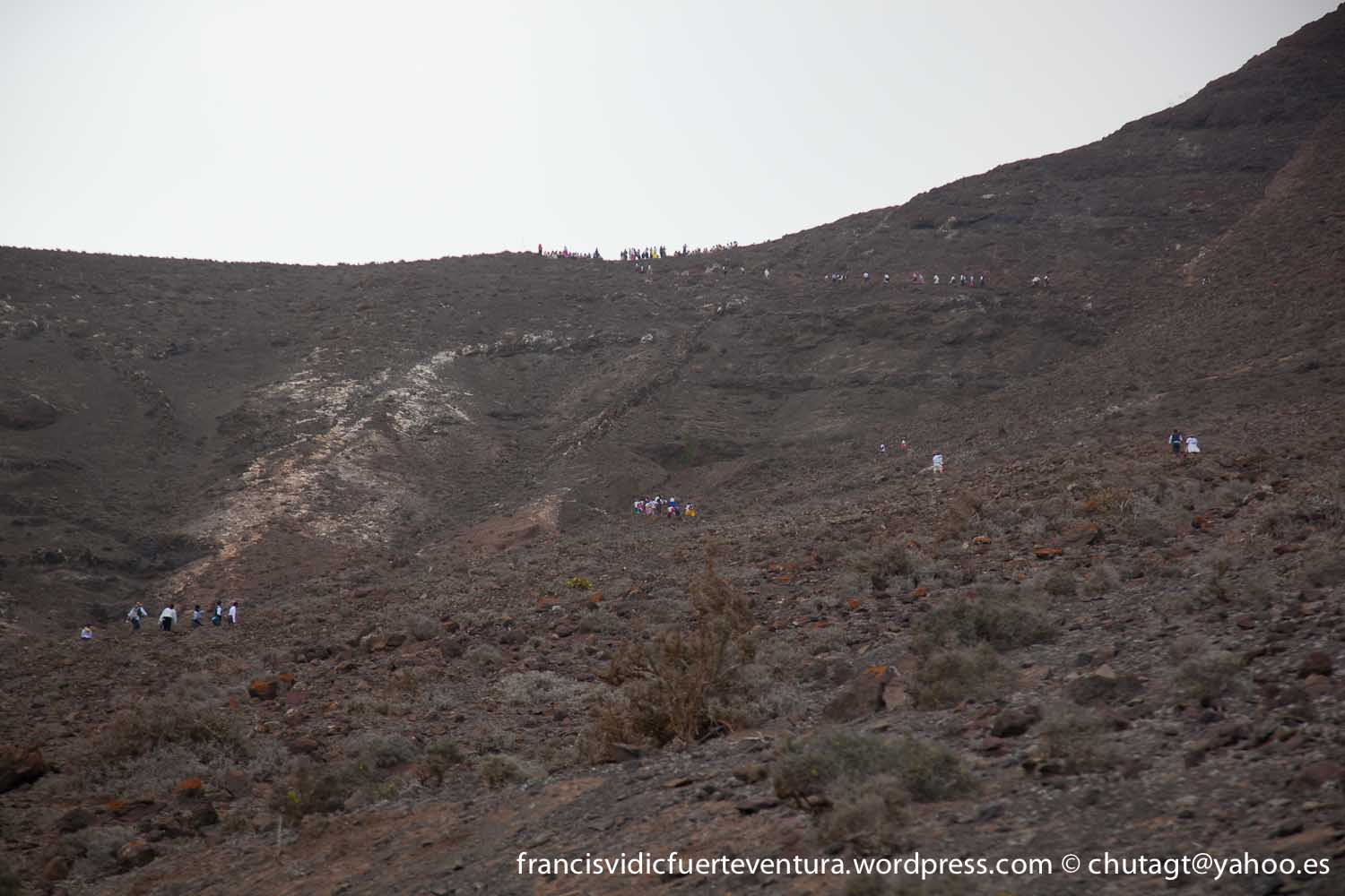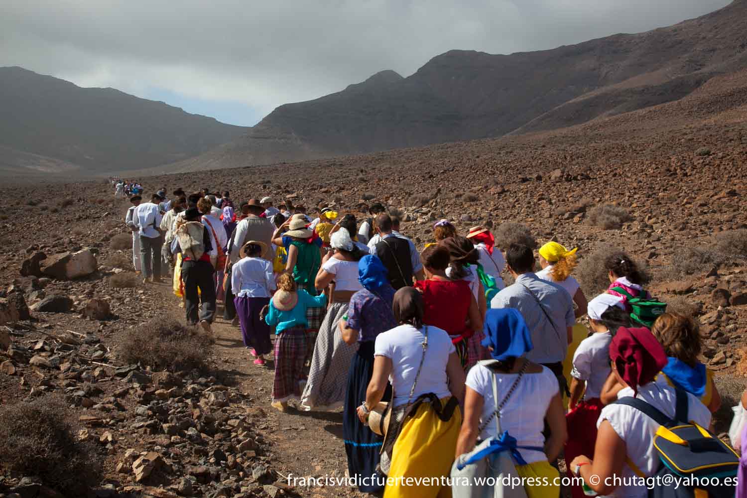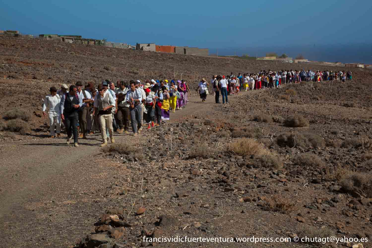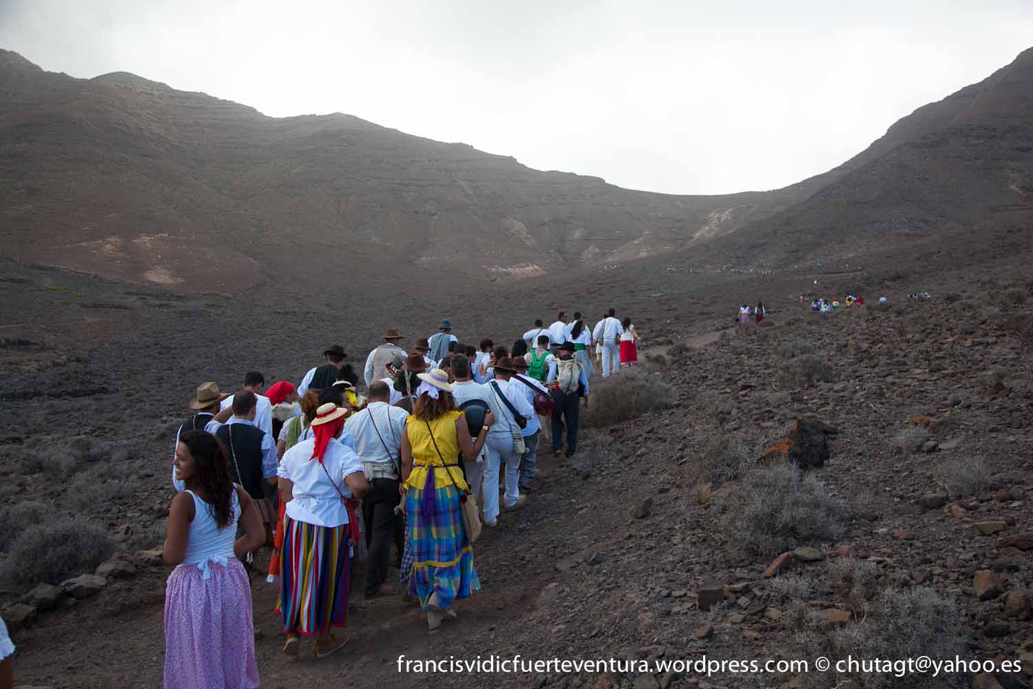 La Romeria de Cofete parte desde Gran valle y en ascenso por el mismo valle hasta la degollada por un camino que va haciendo zig zag hasta llegar a lo alto de la degollada;